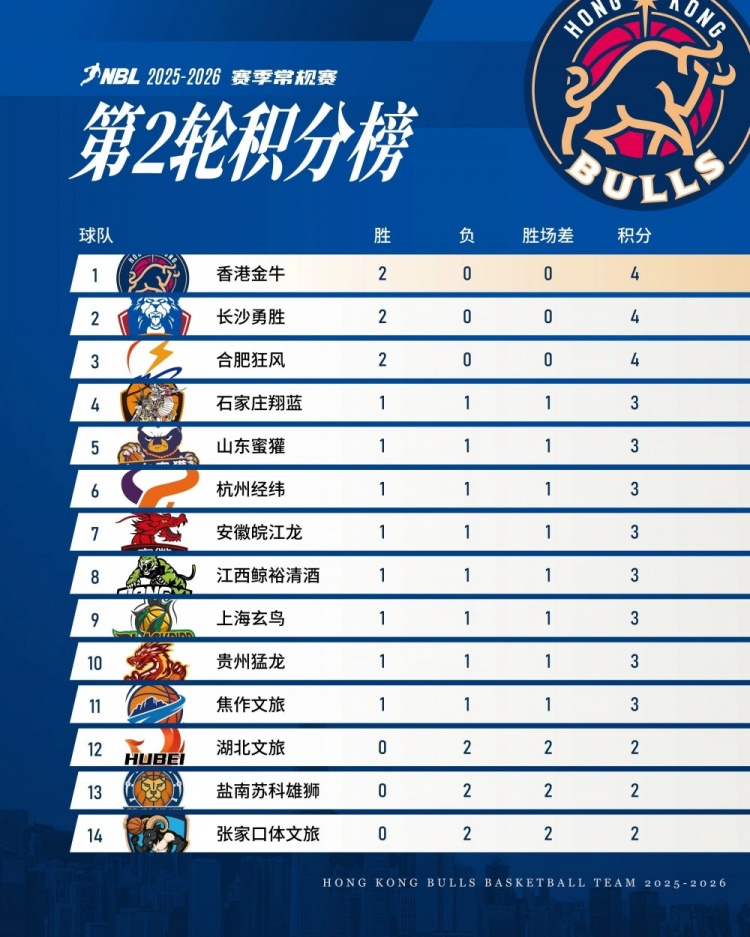 发布时间:2025-12-27 14:49:44点击:4栏目:篮球资讯 NBL常规赛第二轮战罢,香港金牛目前两战全胜积4分暂列榜首。我们会保持状态,全力打好接下来的每一场比赛。Let's Go Bulls! 本文标签: